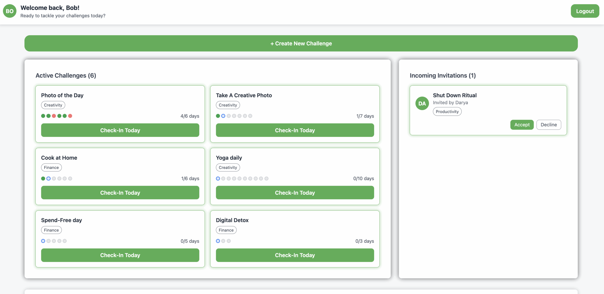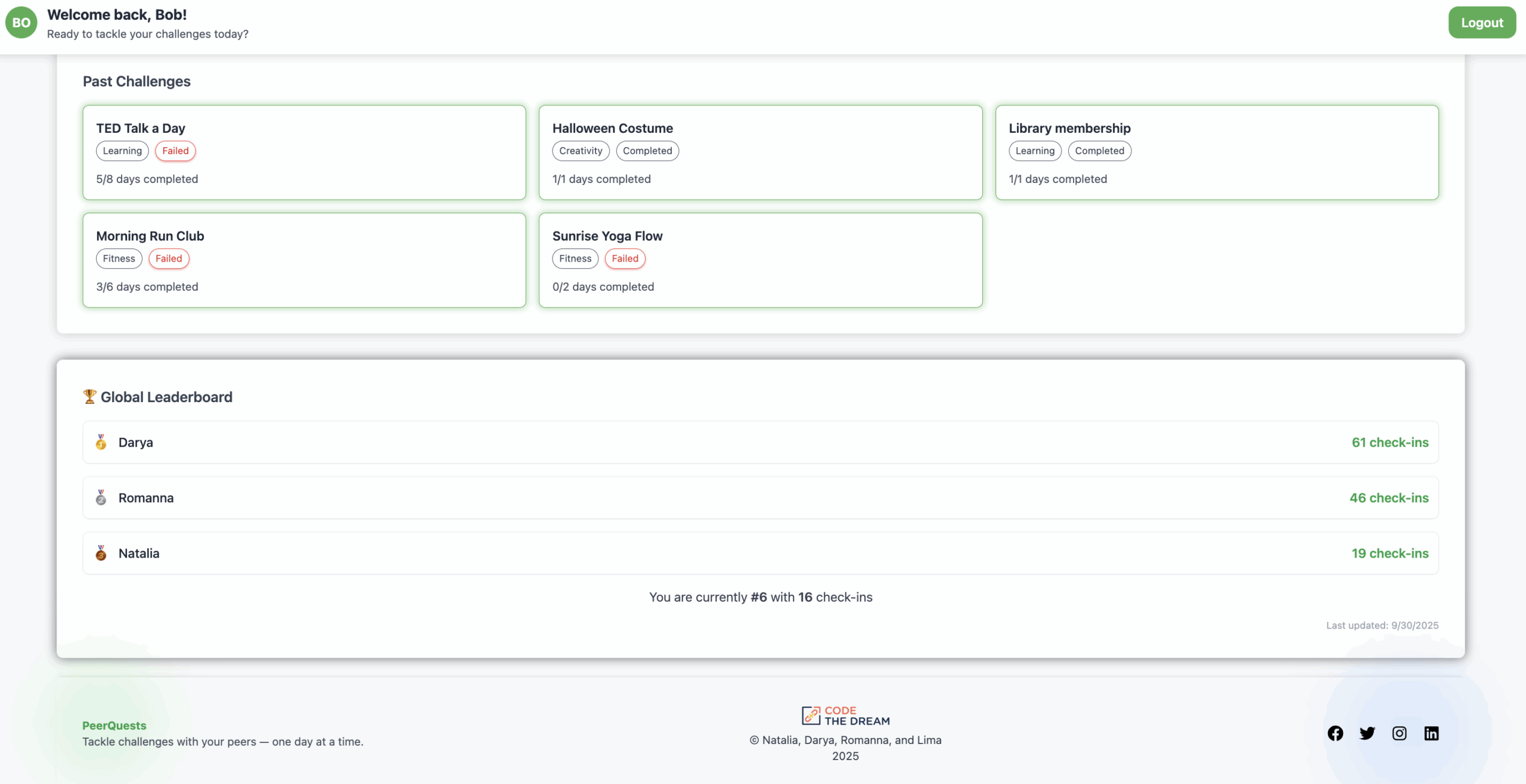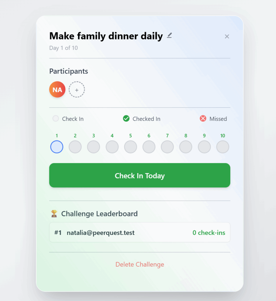PeerQuests is a fun, social platform that helps people stay motivated by building habits together through shared challenges.