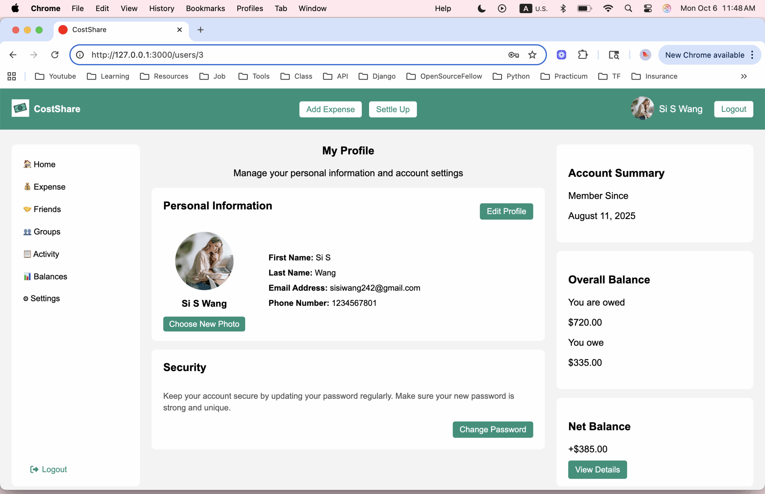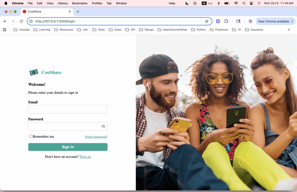 "CostShare" Aims to simplify expense sharing among friends or groups by allowing users to track, split, and settle shared costs easily. Core features include secure user authentication, the ability to add friends and create groups, and comprehensive expense management tools.